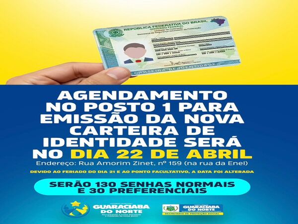 gendamento no Posto 1 é remarcado para 22 de abril Devido ao feria [...]