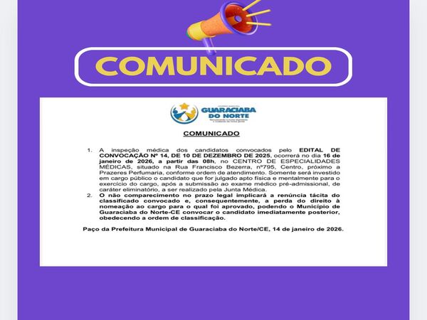 ESTABELECE AS NORMAS PARA A LOTAÇÃO DE PROFESSORAS/ES NOS ESTABELECIMENTOS DE ENSINO DA REDE PÚBLICA MUNICIPAL DE GUARACIABA DO NORTE PARA O ANO LETIVO DE 2026 E DÁ OU [...]